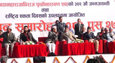 President Ramchsandra Paudel reached the west gate of the Singhadurbar this morning and offered floral tributes to King Prithvi Narayan