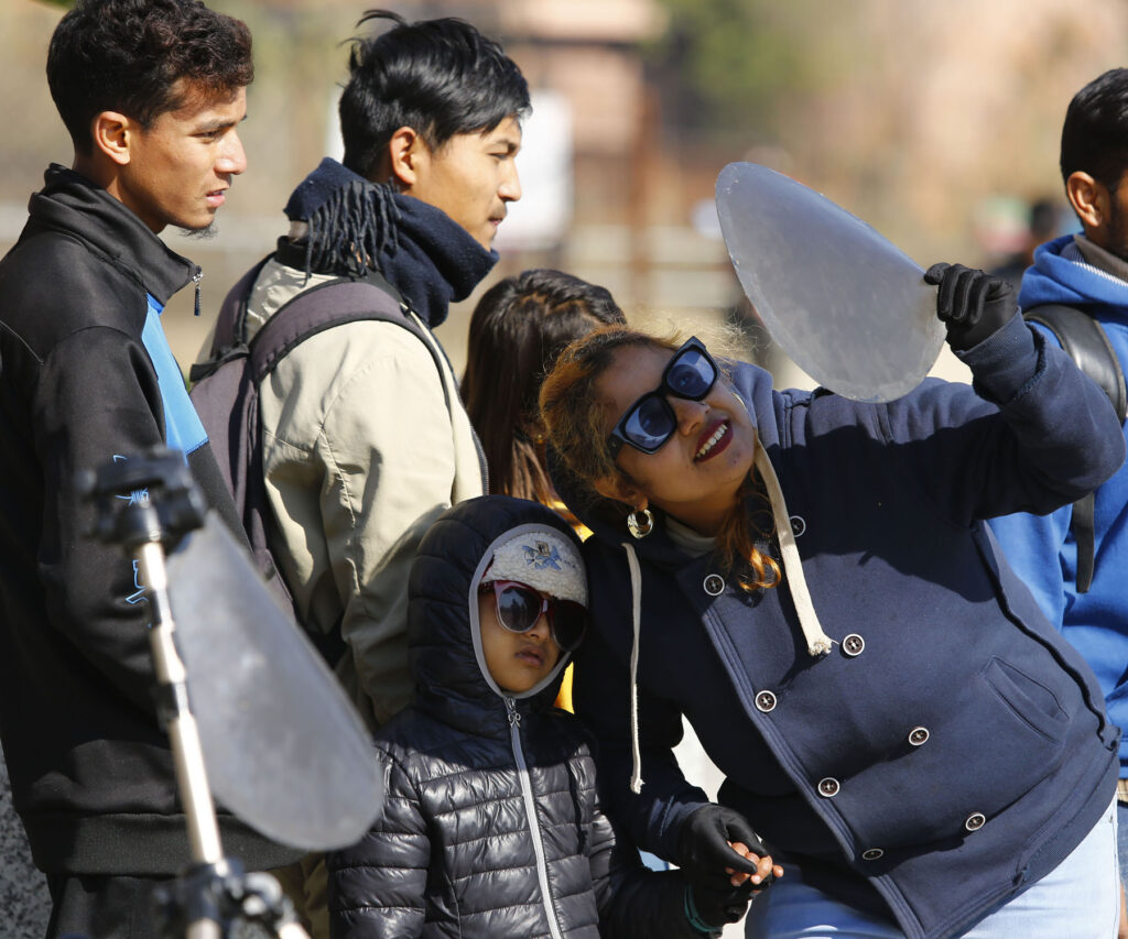 Solar eclipse is seen from Kathmandu, Nepal on Dec 26, 2019. (photo:RSS) Solar eclipse is seen from Kathmandu, Nepal on Dec 26, 2019. (photo:RSS) Minister for Education of Nepal is watching solar eclipse in Kathmandu on Dec 26, 2019 (Photo: RSS) Minister for Education of Nepal is watching solar eclipse