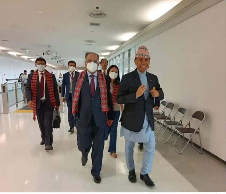 KATHMANDU: Former Prime Minister and Chairman of CPN (Maoist Center) Pushpa Kamal Dahal ‘Prachanda’ has reached Tokyo this morning on a five-day visit to Japan. Nepali Ambassador to Japan Durga Bahadur Subedi welcomed Chair Dahal at Narita International Airport. He left Kathmandu for Japan on Friday night to attend an