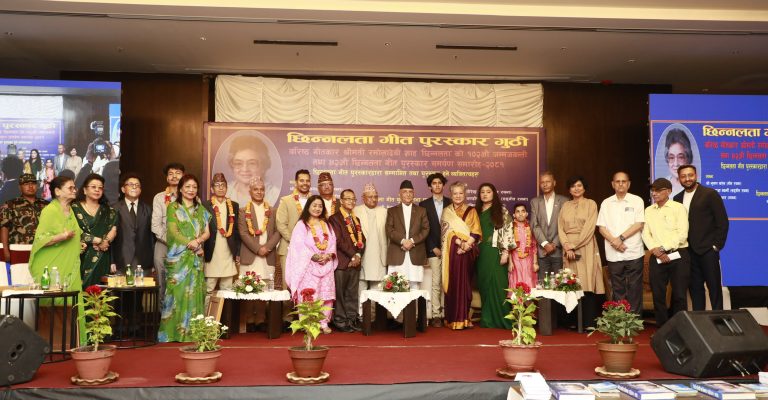 Kathmandu, July 18: Prime Minister KP Sharma Oli has awarded various personalities with the Chinnalata Puraskar (Award) for their notable contributions in Nepali language, literature and art sectors. On the occasion of 102th birth anniversary of lyricist Ramola Devi Shah 'Chinnalata', PM Oli awarded lyrist Bhusan Kharel, musician Manaraja Nakarmi,