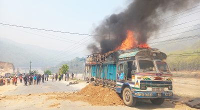 Malekhu (Dhading), April 23: A truck carrying chemical used in drugs has caught fire. The truck (Na 4 Kha 8617)