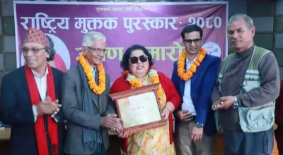Gandaki, Feb 11: The ‘Rastriya Muktak Award-2080’ has been conferred on litterateur Usha Sherchan. A literary organization, Muktak Manch, established