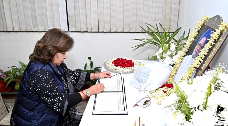 Kathmandu, Dec 29: Foreign Minister Dr Arzu Rana Deuba on Sunday paid tributes to former Prime Minister of India, Dr Manmohan Singh, by expressing grief over his demise. Reaching the Embassy of India in Kathmandu, Minister Dr Rana signed the Condolence Book opened in memory of former Prime Minister of
