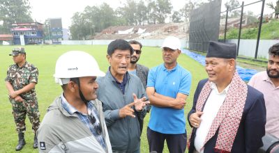 Kathmandu, June 23: Minister for Youth and Sports Tejulal Chaudhary inspected the Kirtipur Cricket Ground on Monday. Work is currently