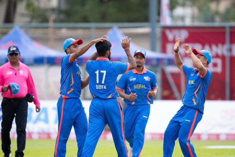 Kathmandu, Nov 2: Nepal has defeated Australia by 11 runs in the match held under the Hong Kong Cricket Sixes tournament underway in Hong Kong. Put into bat after losing the toss, Nepal posted a total of 111 runs in the scheduled 6 overs at the loss of 2 wickets.