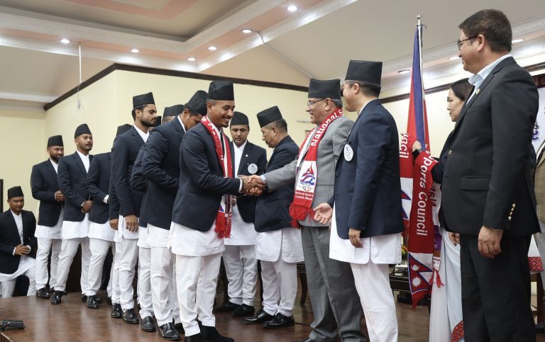 Kathmandu, Sept 14: Prime Minister Pushpa Kamal Dahal 'Prachanda' has bid farewell to the Nepalese team that will participate in the 19th Asian Games today, wishing them success. In the farewell program held at the Prime Minister's office in Baluwatar, he said that the Nepalese team will perform well in