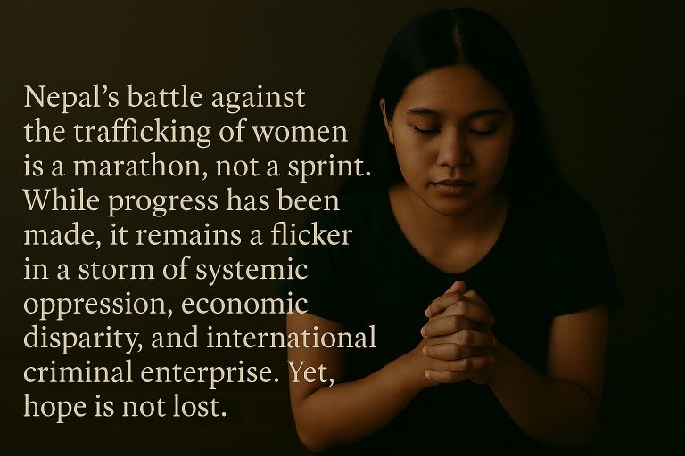 Human trafficking remains one of the most insidious violations of human rights in the 21st century—a clandestine enterprise fuelled by desperation, inequality, and exploitation. Among the countless victims worldwide, women and girls constitute a disproportionate share, particularly vulnerable to sexual exploitation, coerced labour, and domestic servitude. Nepal, perched between two