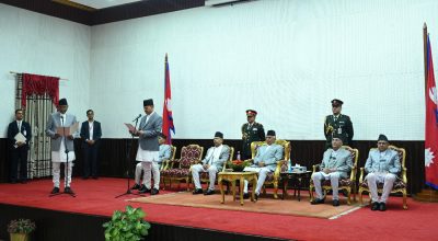 In the presence of President Ramchandra Paudel, Chief Justice Bishowambhar Prasad Shrestha administered the oath of office and secrecy to