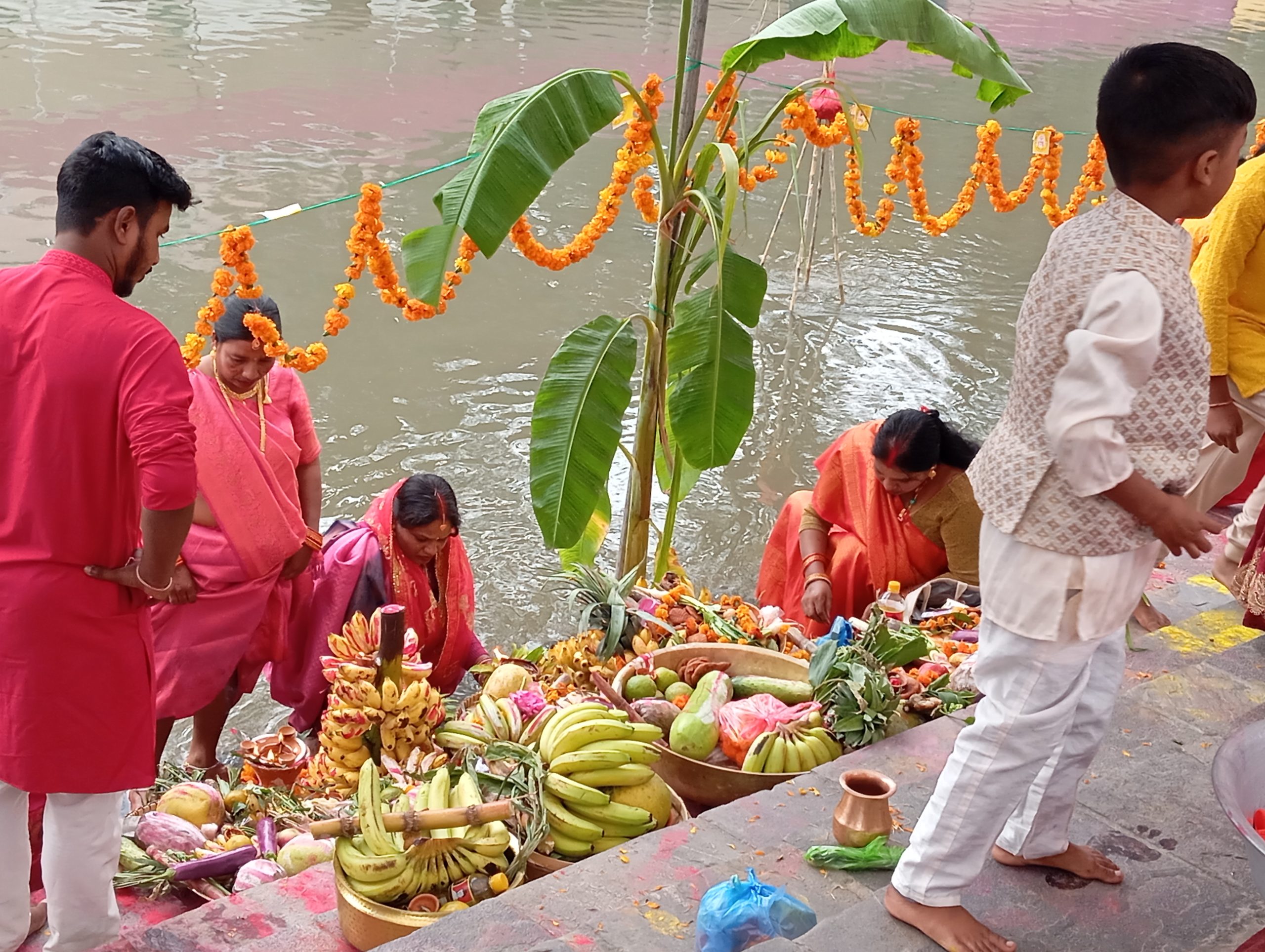 The Guheshwori Gaurighat Chhath Puja Committee informed that the devotees who have observed rigorous fasting are offering arghya to the setting sun this evening. Kamalpokhari, Nakkhu and Bishnumati river banks are also decorated for Chhath celebration.