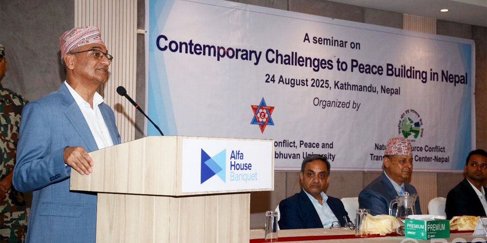 Inaugurating a seminar titled ‘Contemporary Challenges to Peace Environment in Nepal’ organised here today, Home Minister Lekhak expressed the view, “If someone says there is a conflict-free society, it is only imagination, not a reality.