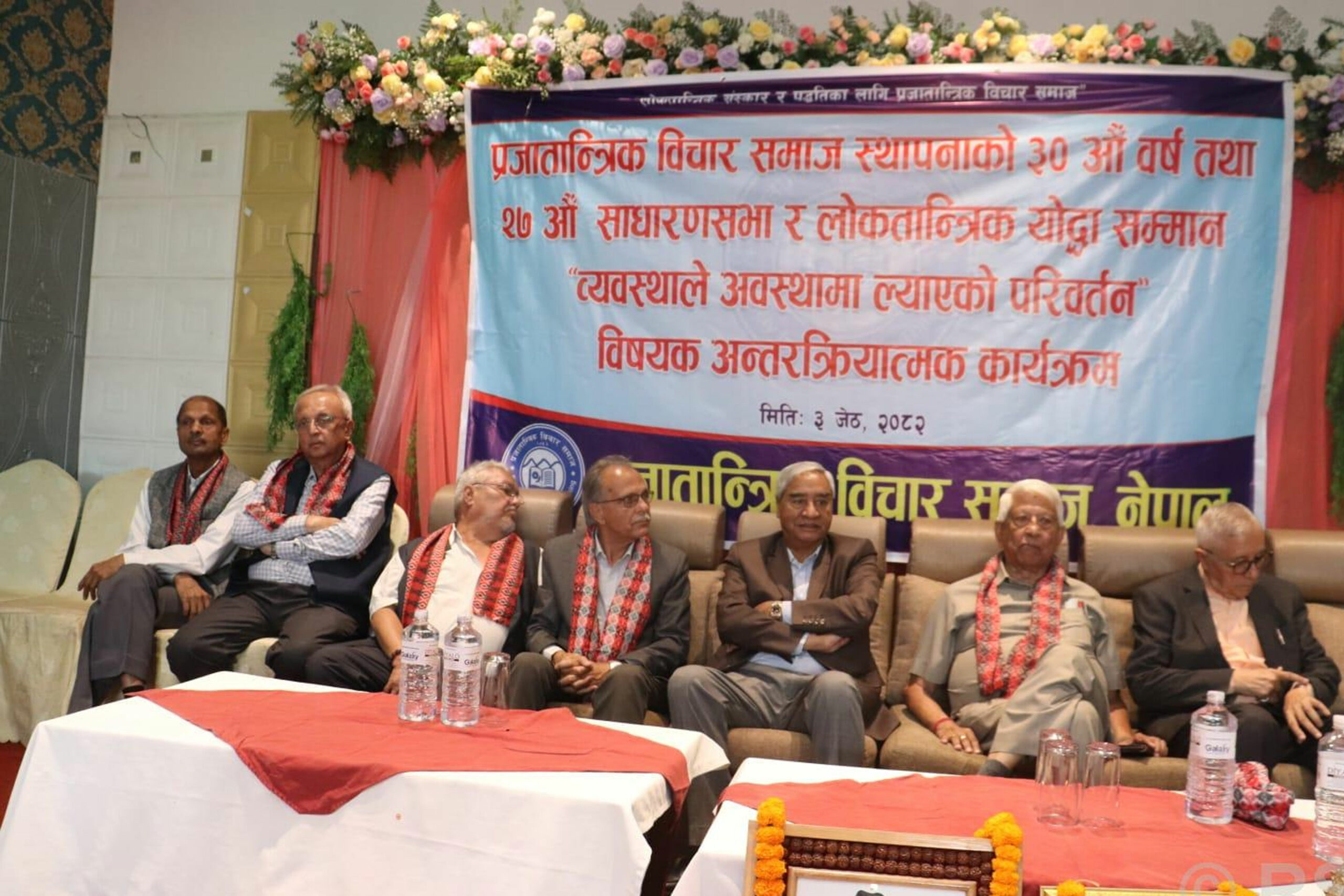Society President Kulchandra Wagley stated that the system has brought about change. Senior Vice President Iswariraj Laudari, General Secretary Basudev Bhattarai, and others mentioned that the society, established on May 17, 1995, has been advocating for the institutional development of democracy. #nepal #political #rss