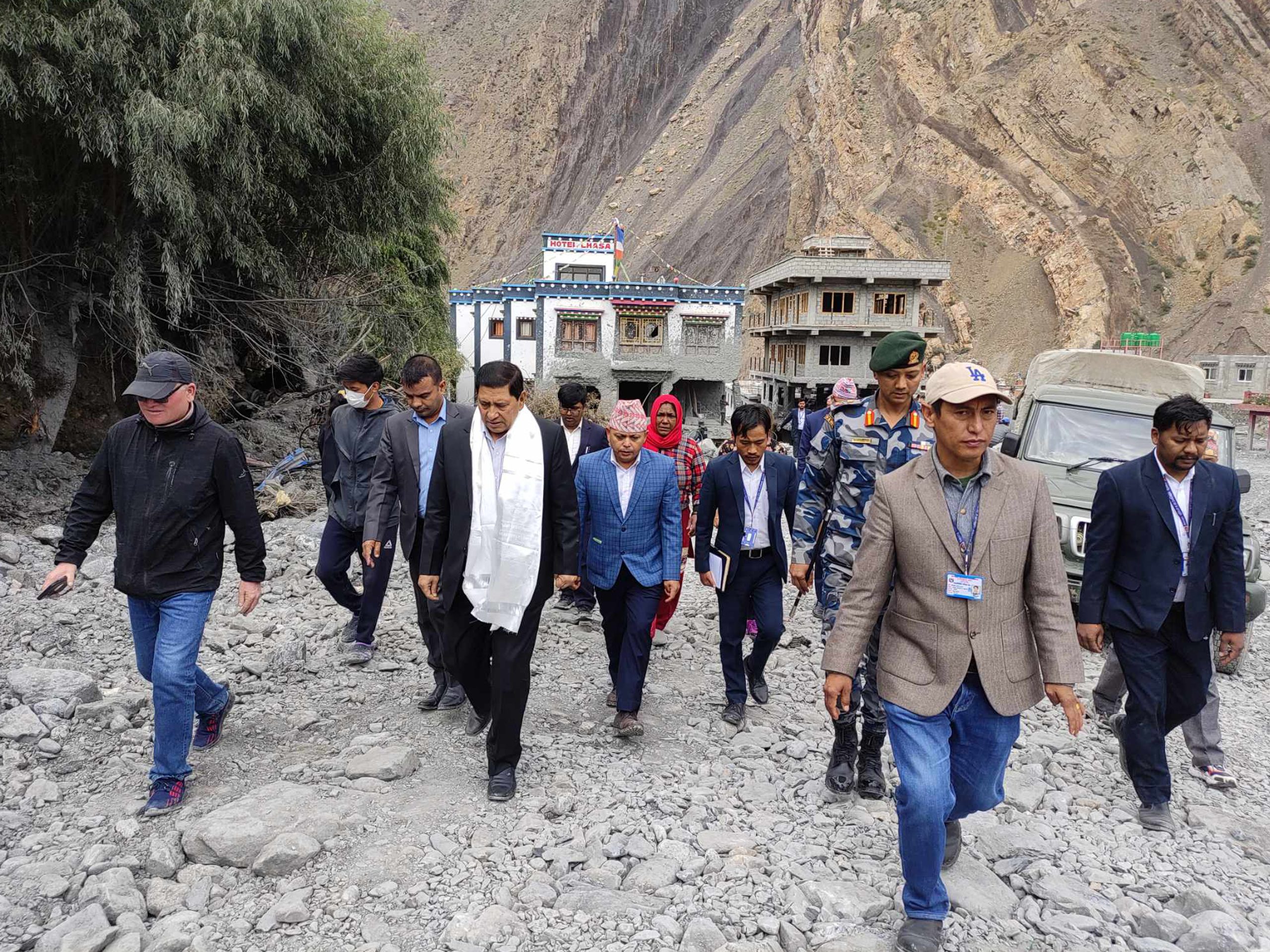 During his inspection to the flood-ravaged Kagbeni settlement at Varagung Muktichhetrai rural municipality-4 in Mustang today, the Deputy Prime minister pledged to undertake the reconstruction efforts targeting the village with high priority. The settlement experienced significant damages from the flooded Kaagkhola stream on August 13.