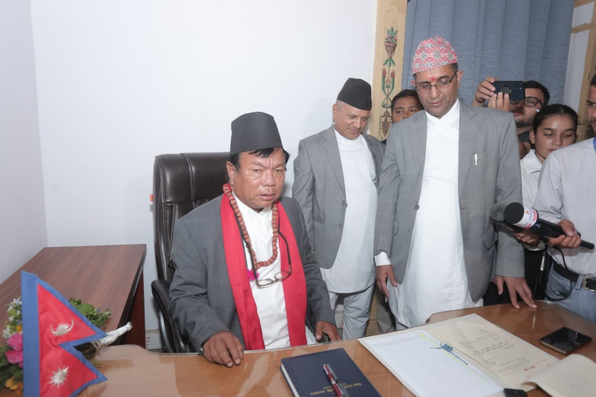 Soon after taking oath of office and secrecy at the Office of the President, Minister Pun reached the Kesharmahal-based Ministry and assumed the office.