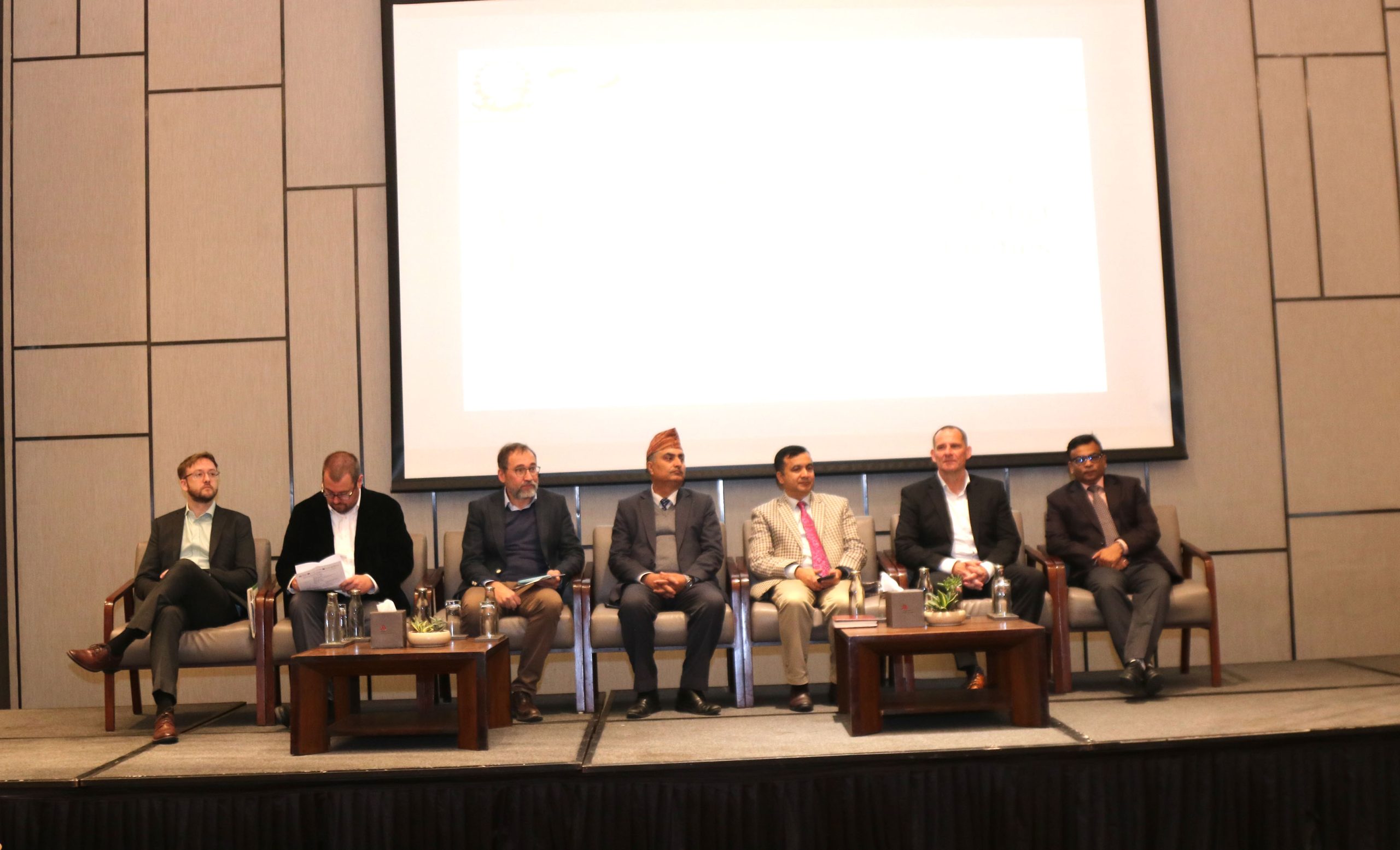 काठमाडौँमा शुक्रबार आयोजित गरिएको ‘नेपालको स्वच्छ उर्जा भविष्य : दिगो उर्जा चुनौती कोषकाे उपलब्धि र अवसर’ विषयक छलफल कार्यक्रममा सहभागी उर्जा सचिव चिरञ्जीवी चटौत, जर्मन विकास नियोग (जिआइजेड) प्रतिनिधिलगायत । तस्बिरः विमलबहादुर विष्ट / रासस