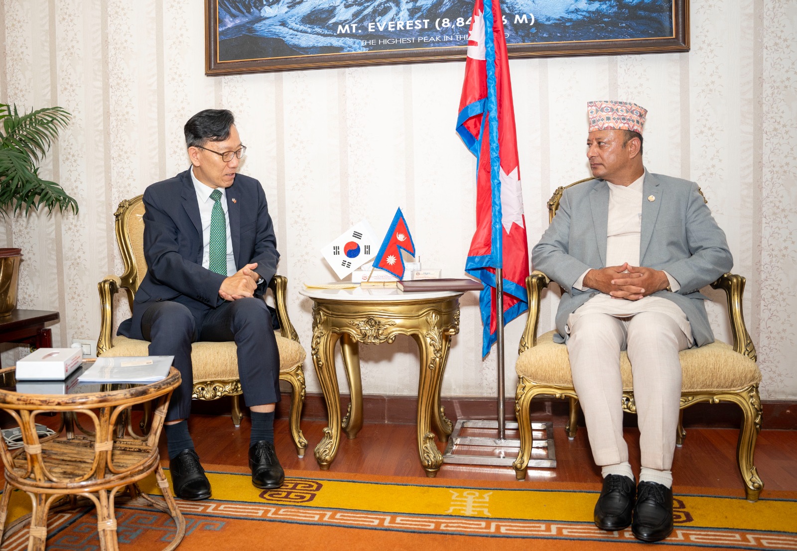 Kathmandu, Aug 26: Ambassador of South Korea to Nepal, Park Tae Young paid a courtesy call on Minster for Energy, Water Resources and Irrigation Deepak Khadka.