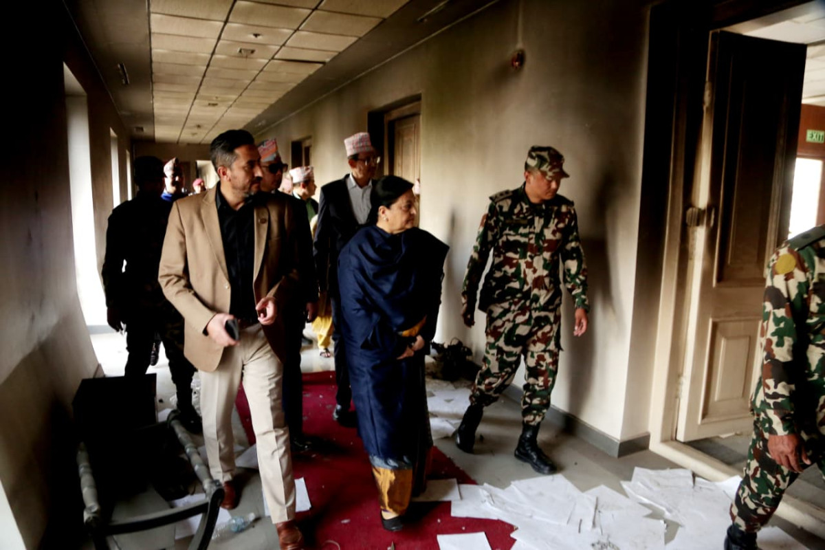 Former President Bhandari engaged in discussions with Prime Minister Karki following an assessment of the structures at Singha Durbar, which sustained damage during the Gen Z protests on September 9.