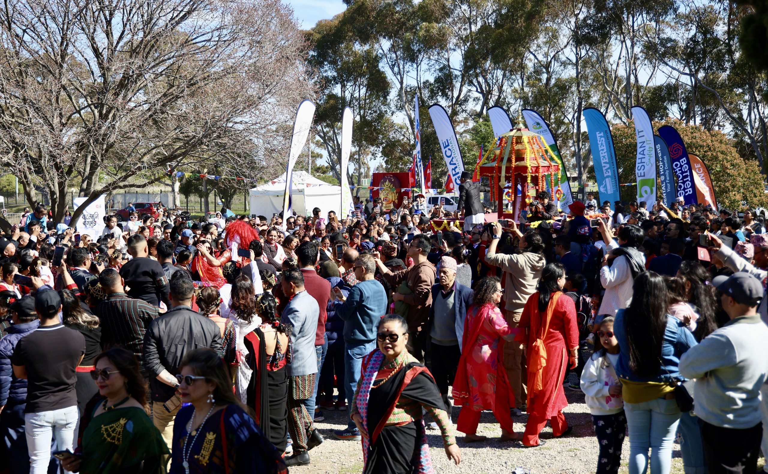 The Indra Jatra festival was celebrated in Melbourne, Australia, organized by the Newa Guthi Melbourne. According to the organizers, the event was held in Melbourne for the first time with the participation of the Newar community along with other Nepali communities.