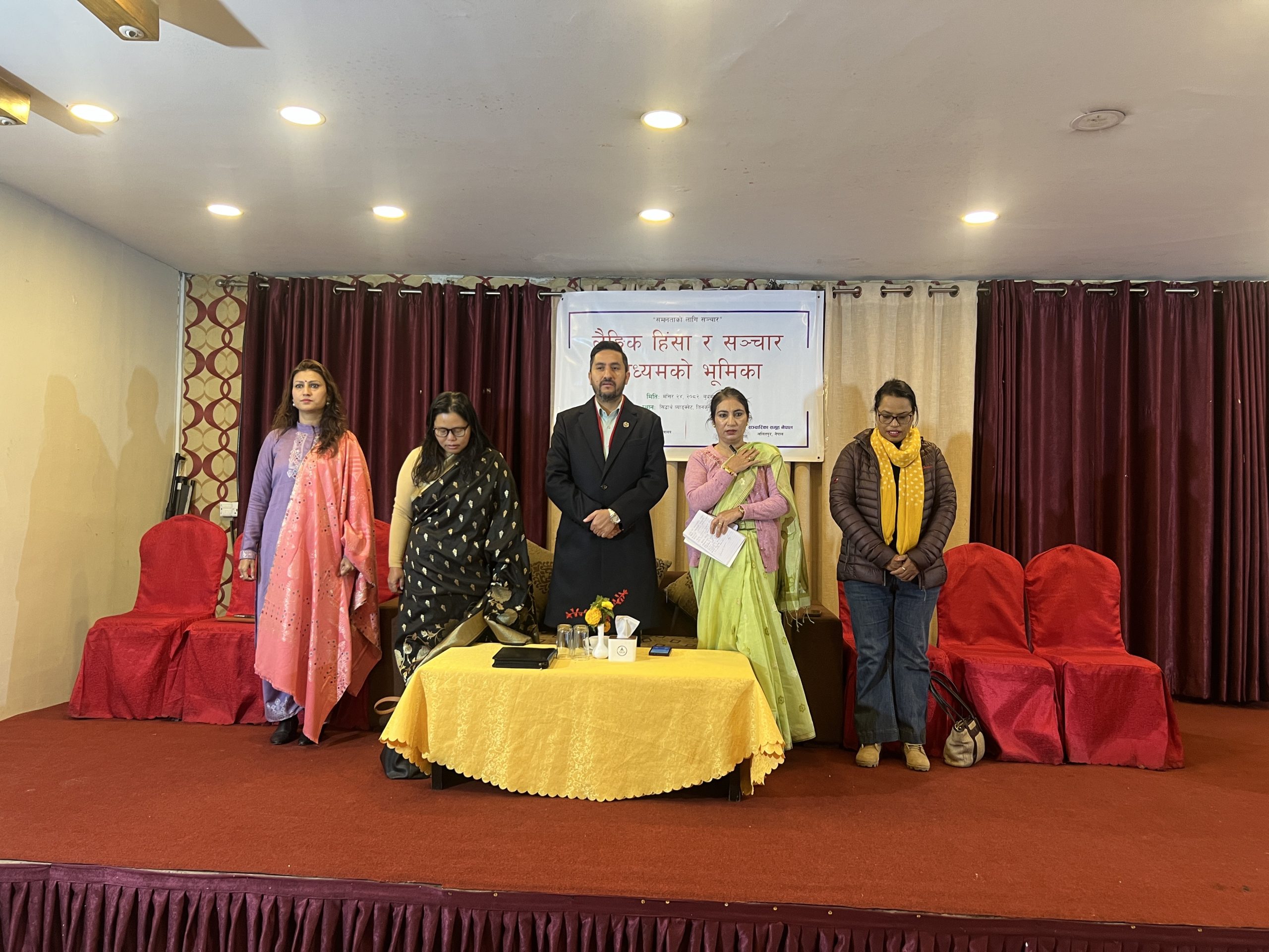 Noting the changing nature and forms of gender-based violence, Minister Kharel encouraged the female media professionals to keep themselves safe from digital violence and called for a campaign against violence against women through digital platforms while maintaining personal safety.