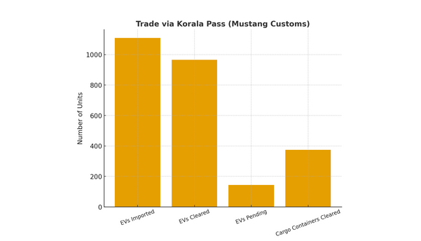 The reopening of Korala for full-scale operations has boosted local trade, employment, and income opportunities in Mustang. According to Tashi Norbu Gurung, Chairperson of Lomanthang Rural Municipality, local youth and drivers are earning significantly by assisting in loading/unloading goods and driving imported EVs out of the customs yard.