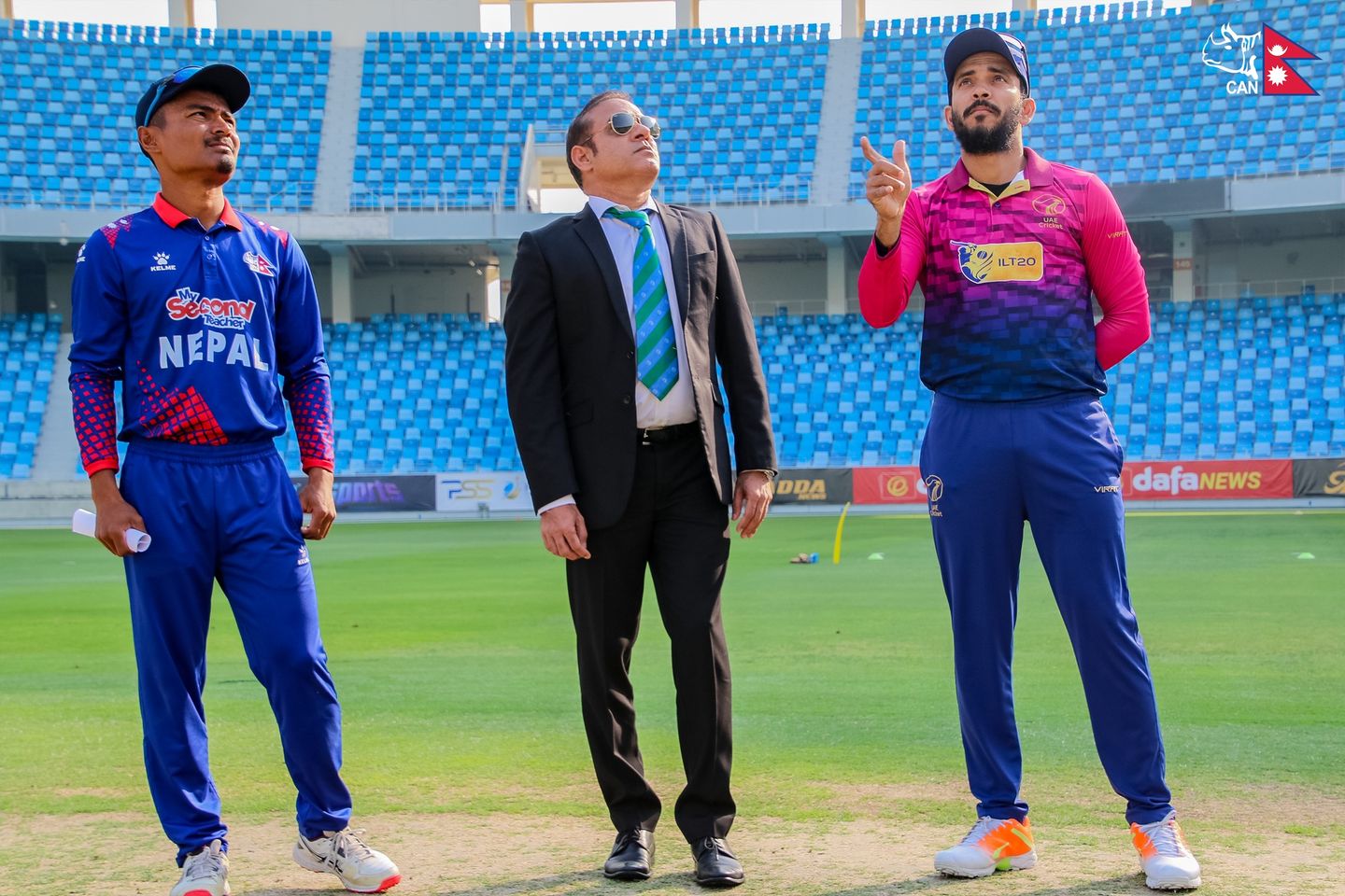 After winning the toss at the Dubai International Cricket Stadium, Nepal chose to bowl first. In today’s match, leg spinner Sandeep Lamichhane has been replaced by fast bowler Pratish GC.