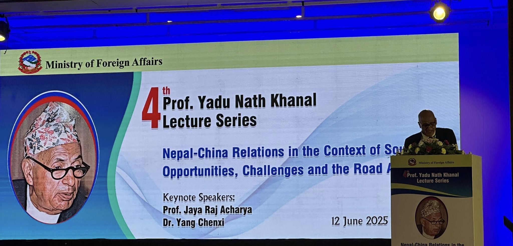 [Prof Jaya Raj Acharya was Ambassador of Nepal to China, writer and learned researcher on foreign policy dynamics. Prof Acharya was delivering a keynote address on “Nepal-China Relations in the Context of South Asia: Opportunities, Challenges and the Road Ahead” organized by Nepal’s Ministry of Foreign Affairs as part of 4th Prof. Yadu Nath Khanal Lecture Series on June 12, 2025 in Kathmandu]