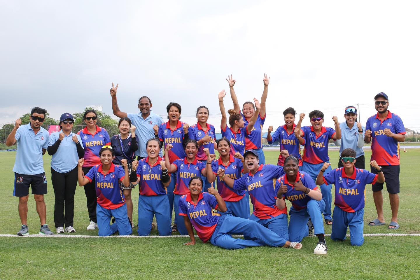Rajamati Airee and Manisha Upadhyay took one wicket each for Nepal. Nepal and Thailand have already reached the global qualifying stage of the World Cup. In the first match, both defeated the UAE to reach the global qualifiers. #nepal #cricket #T20 #ICC
