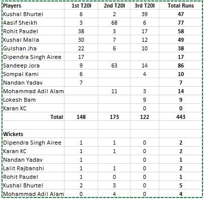 Not only the players but also Nepali umpires and commentators had a role in the series. Buddhi Bahadur Pradhan, Binay Kumar Jha, and Durganath Subedi officiated matches as ICC umpires. On the commentary panel, Nepal was represented by former national captain Paras Khadka, ex-player Sharad Vesawkar, and broadcaster Sachin Timilsina, alongside global names like Ian Bishop, Andrew Leonard, and Carlos Brathwaite.