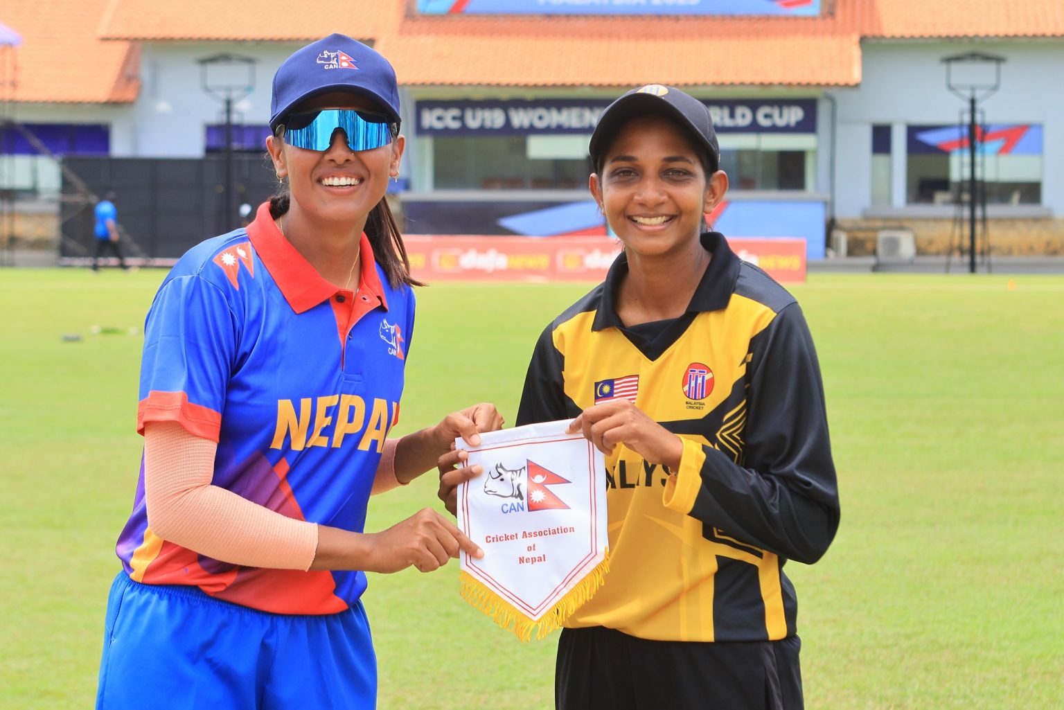 Batting first after winning the toss, Malaysia has posted 44 runs for the loss of 3 wickets within five overs. Kabita Kunwar dismissed Ainna Hamizah Hashim on 0 and captain Winifred Duraisingam on 2 runs. Puja Mahato dismissed Wan Julia on 0 as well.