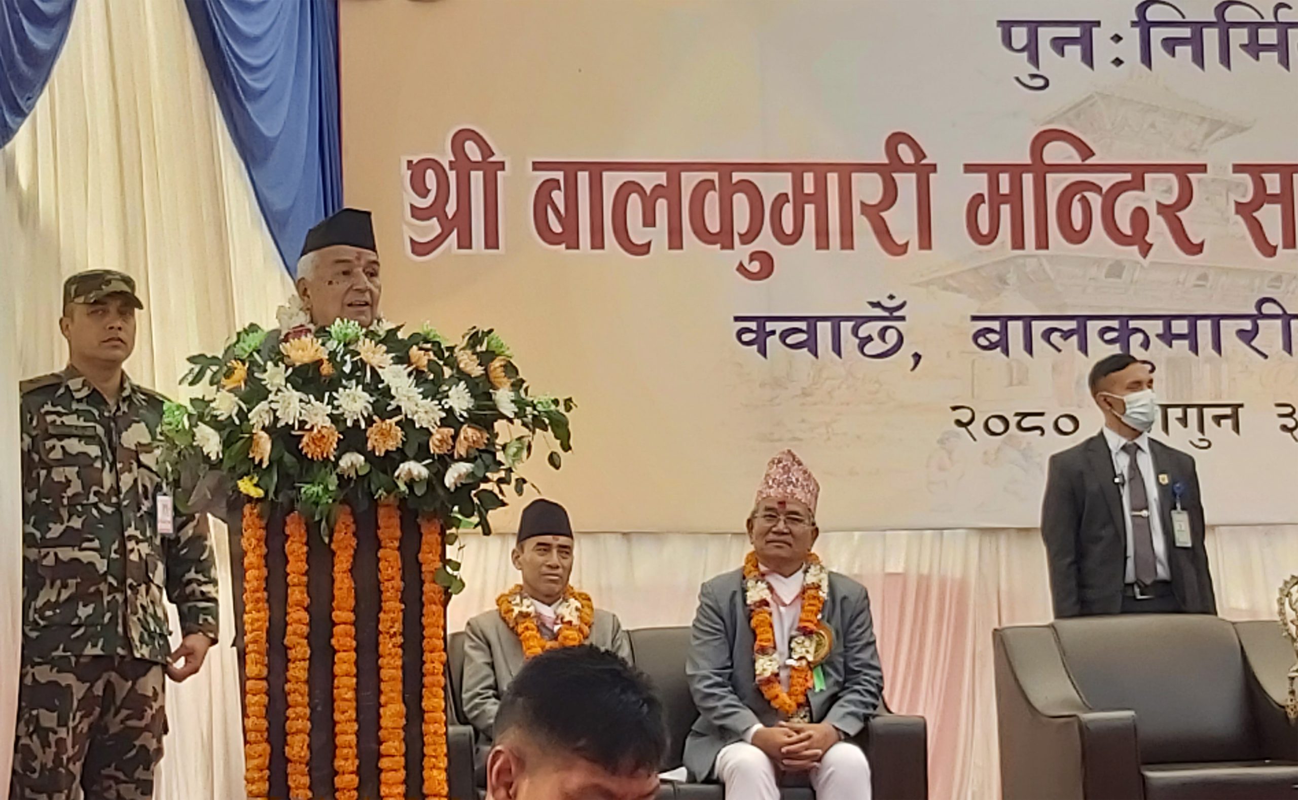 In his address to the inaugural ceremony of the reconstructed Balkumari Temple at Balkumari in Lalitpur, President Poudel lauded the efforts made by the government to rebuild and keep alive the important historical heritages of Kathmandu, Lalitpur and Bhaktapur.