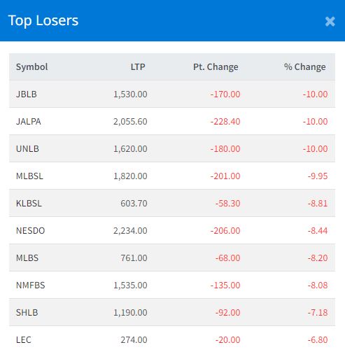 The share price of all the 13 sub-groups traded has decreased. According to NEPSE, 3,754,334 shares of various companies were bought and sold. The total turnover stood as Rs. 1,289,371,531.