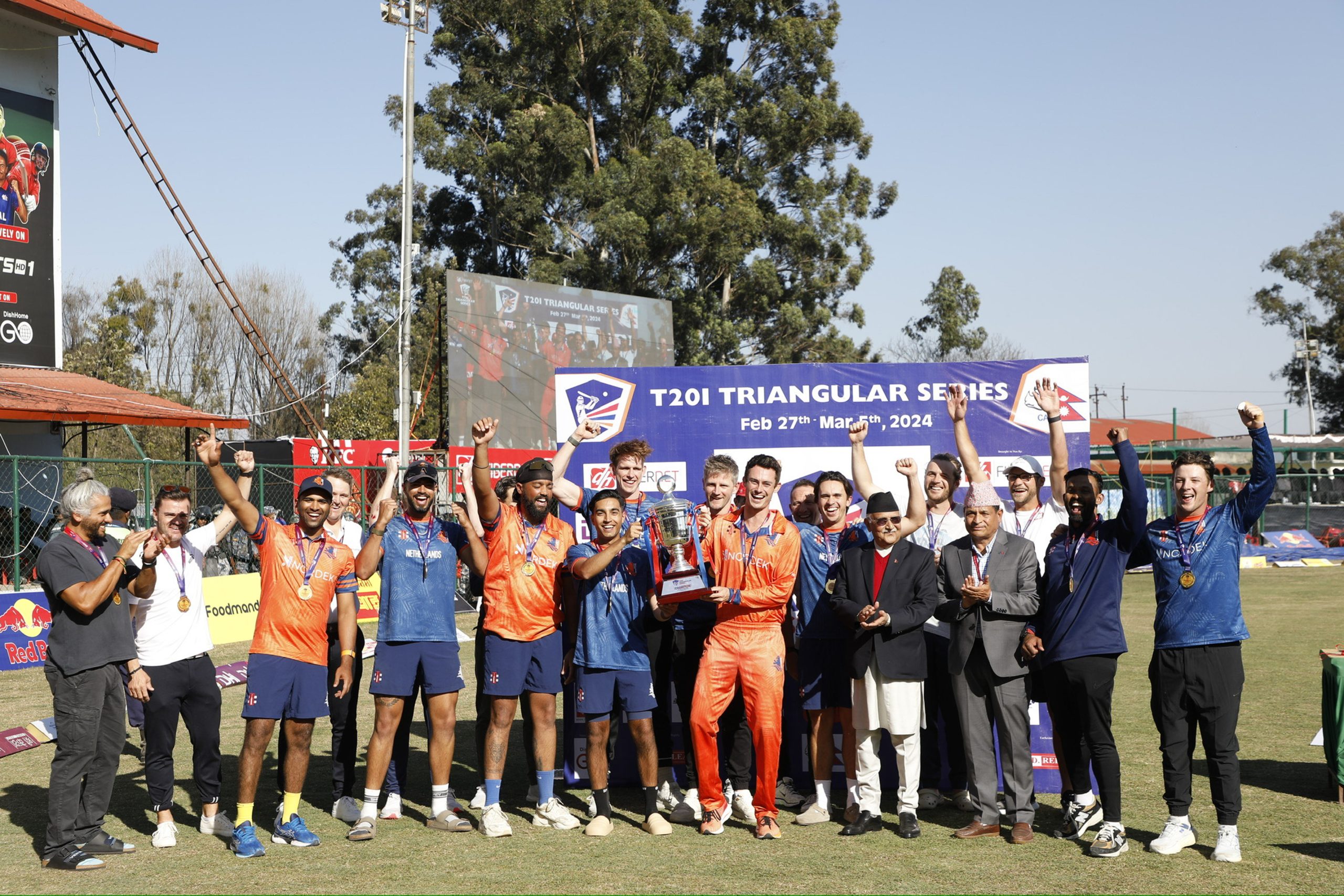 Kathmandu, March 5: The Netherlands clinched the title of the Tri-nation T20 International Series, defeating Nepal by four wickets in the final held today at Kirtipur-based Tribhuvan University Cricket Ground.