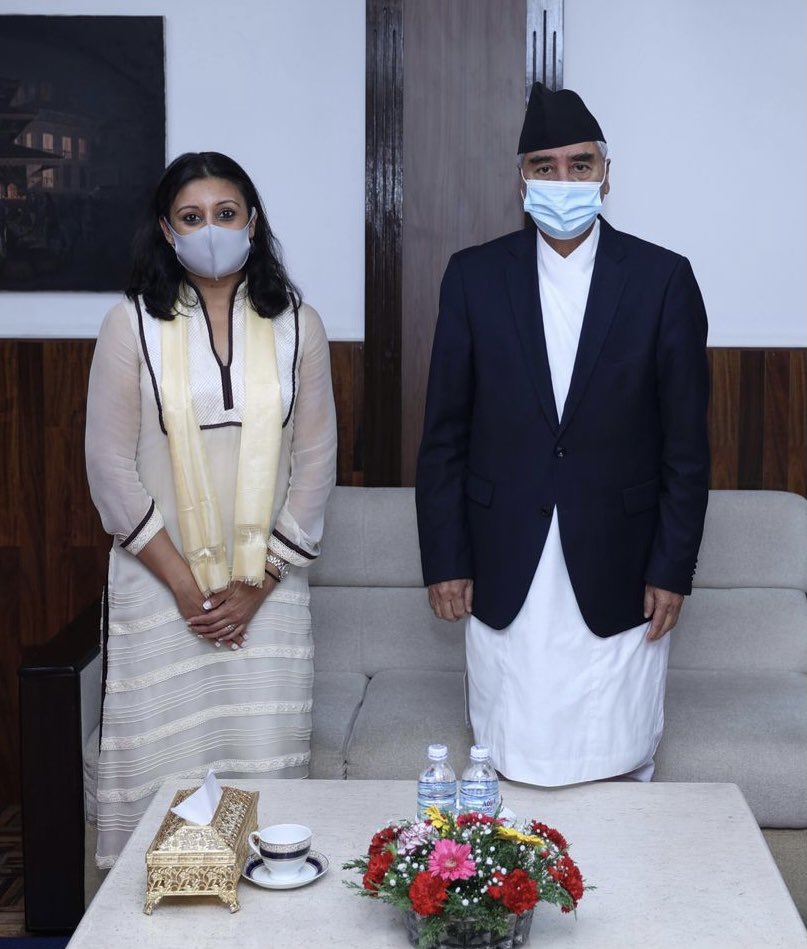 Earlier, she held talks with Chairperson of the CPN (Unified Socialist) Madhav Kumar Nepal, CPN (UML) Chairperson KP Oli and former Prime Minister Baburam Bhattarai.