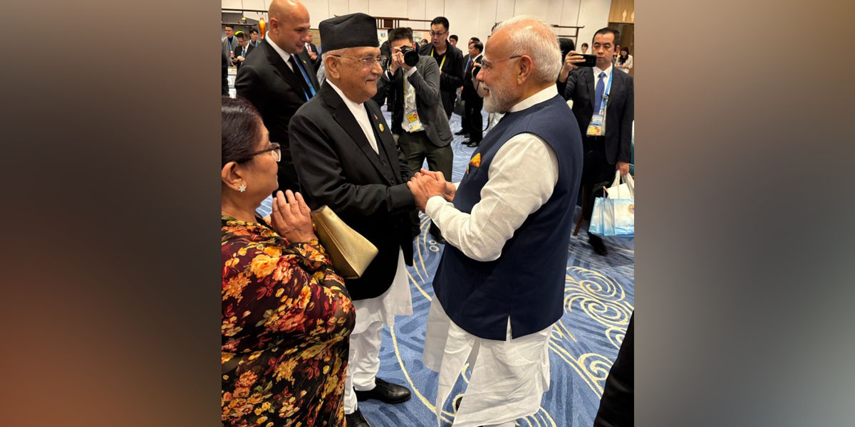 Tianjin, Aug 31: Prime Minister KP Sharma Oli has informally met with Indian Prime Minister Narendra Modi in China on Sunday.