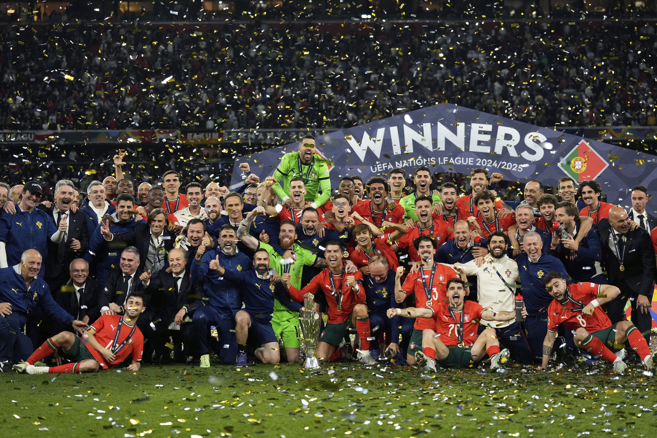 MUNICH (AP) — Cristiano Ronaldo hoisted up the Nations League trophy and “We Are The Champions” rang around the stadium after Portugal defeated Spain 5-3 in a penalty shootout in Munich on Sunday.