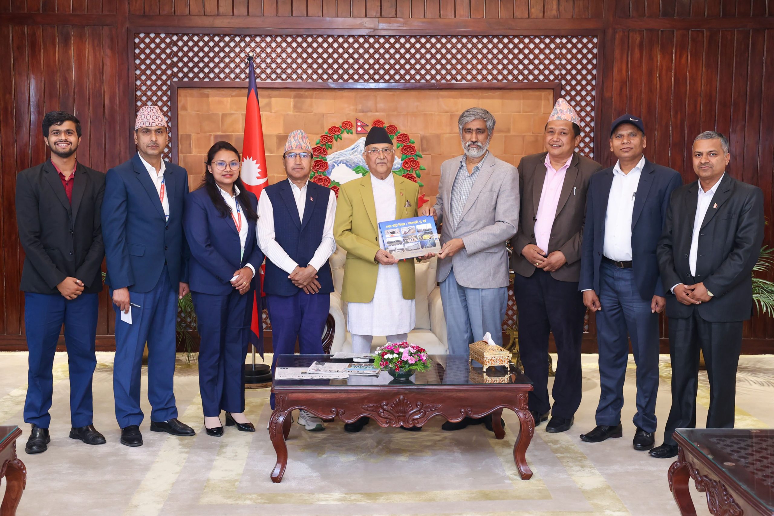 Together with Chairman Jha to hand over the photo book were General Manager Siddha Raj Rai, Chief Editor Uttam Silwal, Administrative Chief Shital Mahato, Chief Reporter Narayan Prasad Neupane, senior reporter Prakash Silwal, reporter Kalika Khadka and photojournalist Bikalpa Dahal.