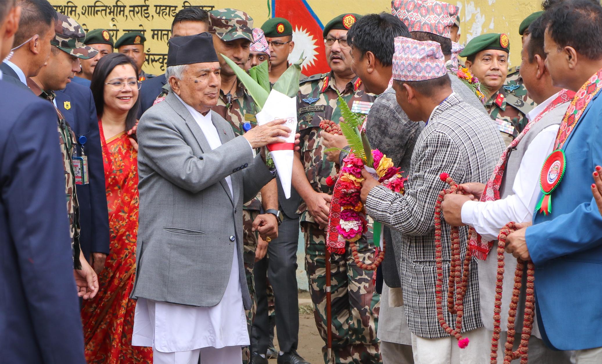 Upon arrival here, the President was welcomed by Chief District Officer Sirjana Thapaliya, Minister for Energy, Water Resources and Irrigation, Deepak Khadka and school Principal Bishwanath Subedi among others.