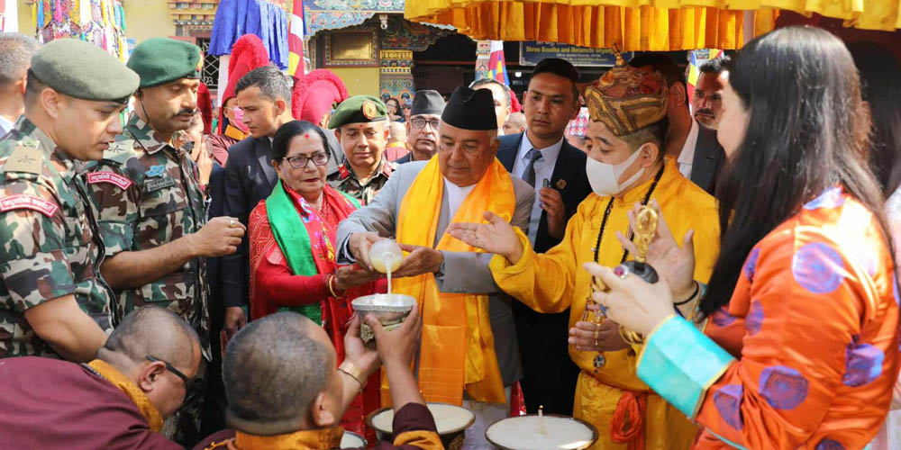 Kathmandu, May 12: President Ramchandra Paudel and his spouse Sabita Paudel conducted worship at Lhakhang monastery of Bouddha, Kathmandu on the occasion of the 2569th Buddha Jayanti this morning.