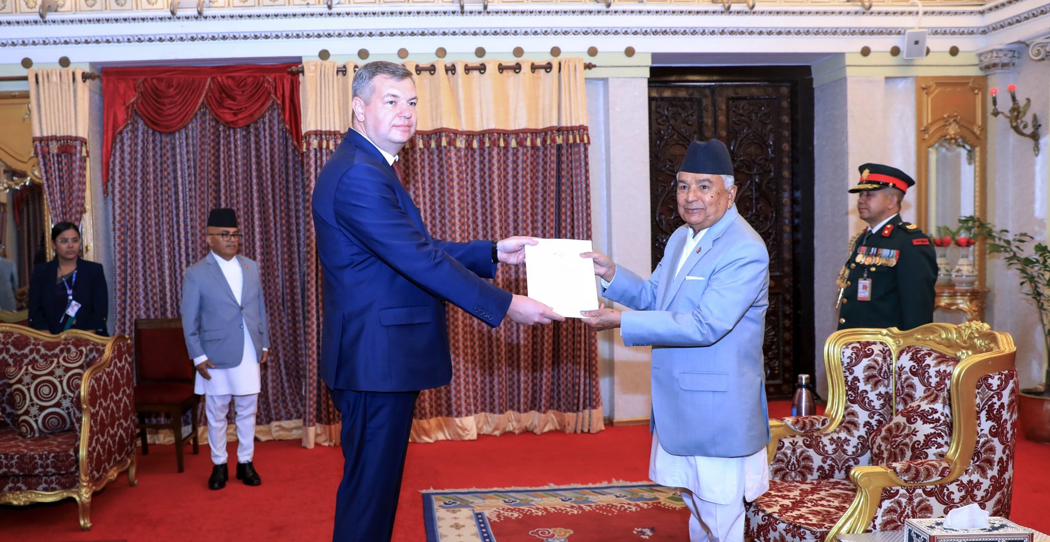 Kathmandu, April 30: A total of five newly appointed non-resident ambassadors to Nepal presented their letters of credence to the President of Nepal Mr Ram Chandra Paudel in separate special ceremonies held at the President’s Office, Sheetal Niwas.