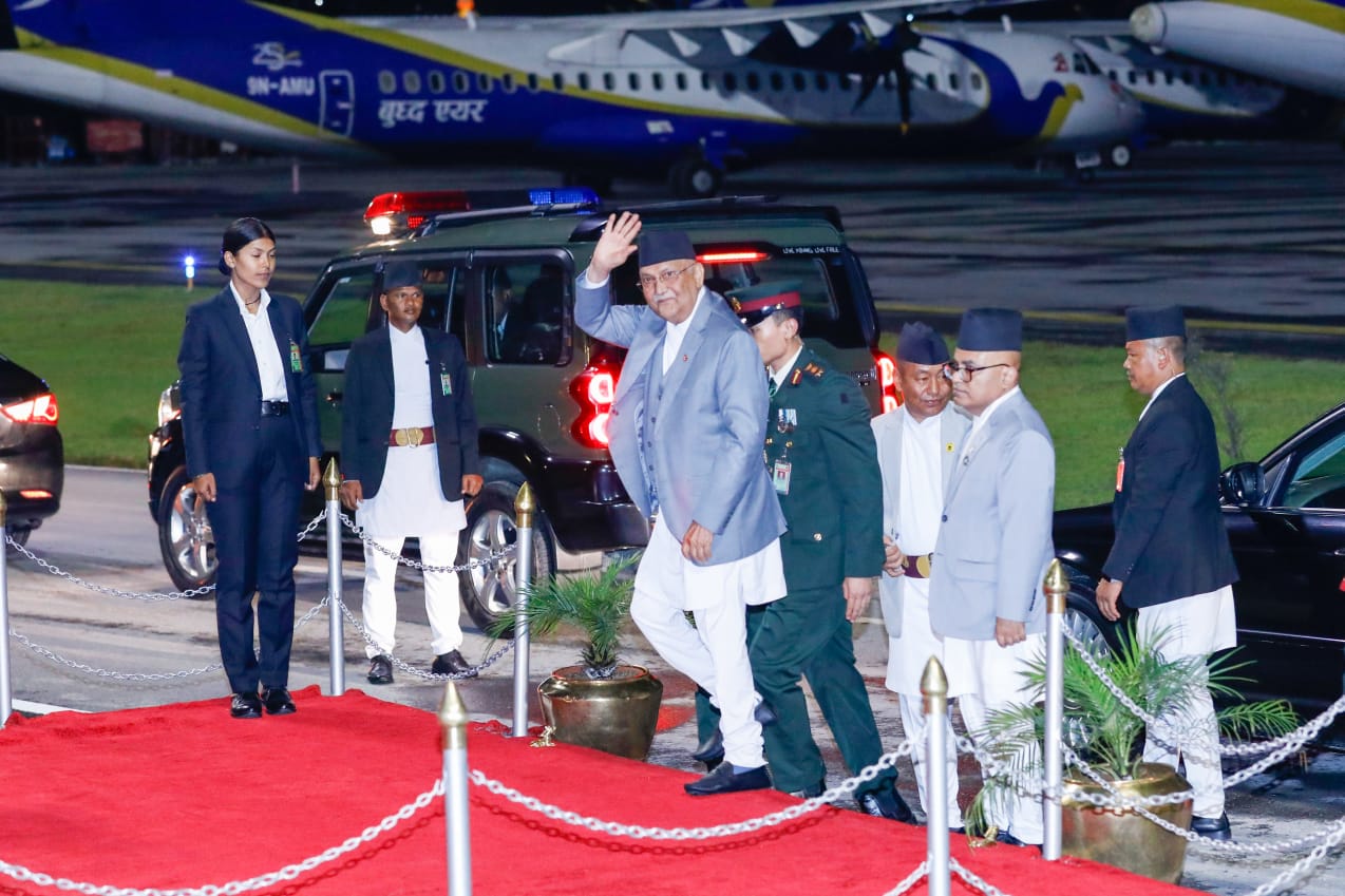 Deputy Prime Minister and Minister for Urban Development Prakash Man Singh, Minister for Home Ramesh Lekhak and Minister for Culture, Tourism and Civil Aviation Badri Prasad Pandey received the Prime Minister at VVIP Lounge of the Tribhuvan International Airport.