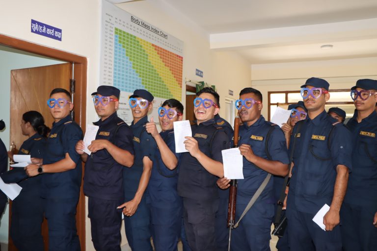 Kathmandu, Oct 9: Free eye checkups were conducted for security personnel on the occasion of World Vision Day.