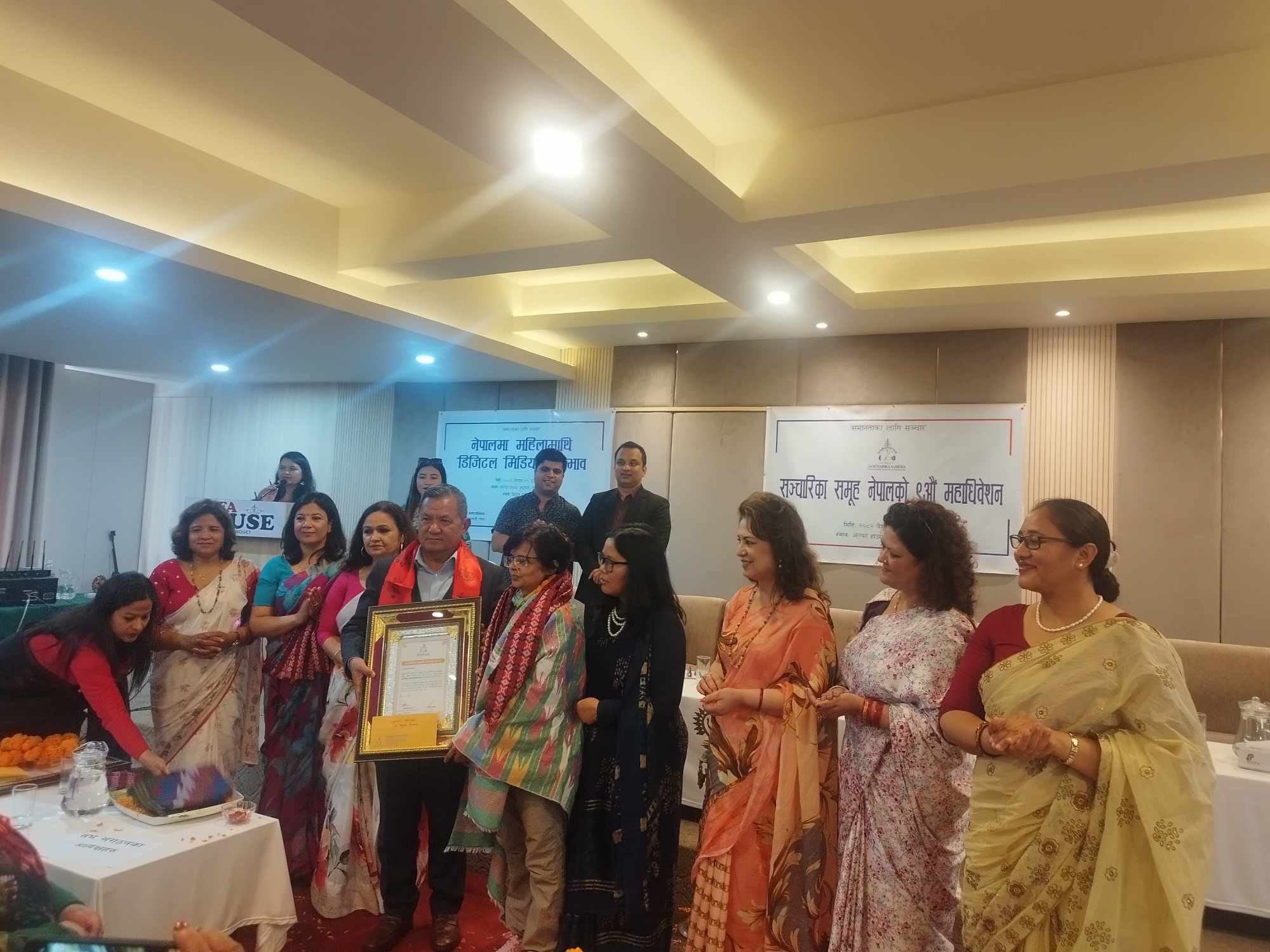 Minister for Communication and Information Technology Prithvi Subba Gurung handed over the awards to both of them on the occasion of the ninth general convention of Sancharika Samuha Nepal today.Sancharika Samuha is the forum of women journalists and communicators.