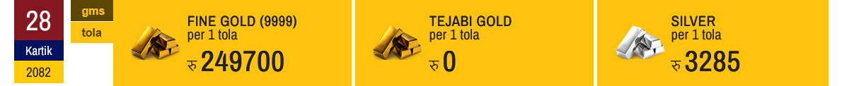 According to the Federation of Nepal Gold and Silver Dealers’ Association, gold is being traded at Rs 249,700 per tola and silver at Rs 3,285 per tola today.