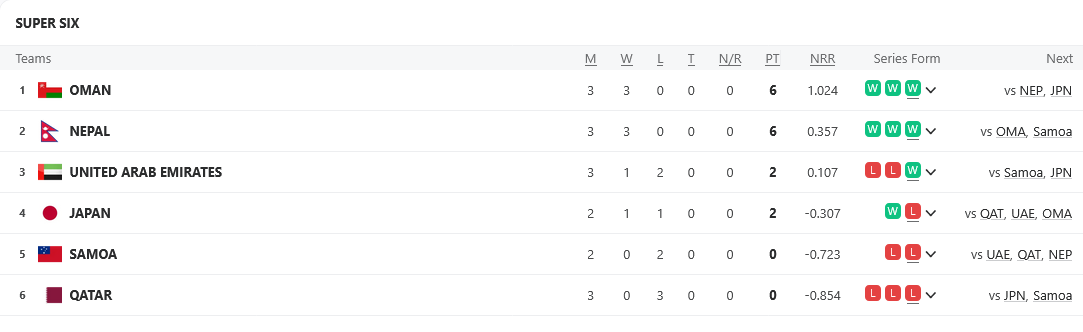 Nepal advanced to the Super Six stage as the winner of Group ‘B’, having defeated Kuwait and Japan in the group round.