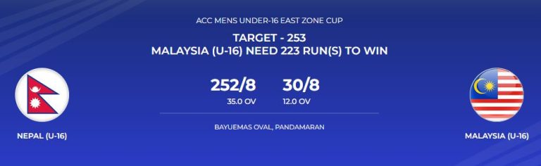 Kathmandu, July 4: Nepali youth batsman Naren has scored 112 runs in the final against host Malaysia in the ACC Mens Under-16 East Zone played at Bayuemas Oval, Pandamaran, Malaysia. He faced 89 balls. He hit 2 sixes and 10 fours, and remained not out. After winning the toss Nepali