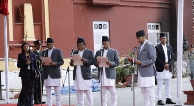 Four newly appointed ministers in the interim government led by Sushila Karki took oath of office and secrecy before President