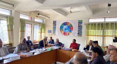 Kathmandu, Dec 3: Finance Minister Rameshore Prasad Khanal and Minister for Law, Justice and Parliamentary Affairs, Anil Kumar Sinha called on Chairperson of National Assembly (NA), Narayan Prasad Dahal, today. In separate meetings held at the Singha Durbar-based NA Chair office, matters pertaining to the construction of NA assembly hall,