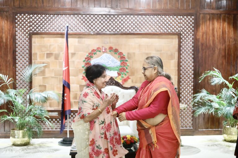 Kathmandu, Oct 27: Prime Minister Sushila Karki felicitated social worker Anjali Maskey in recognition of her philanthropic activities. Prime Minister Karki invited Maskey to her official residence in Baluwatar and honoured her by donning a shawl. During a brief conversation, Prime Minister Karki said she had always desired to meet