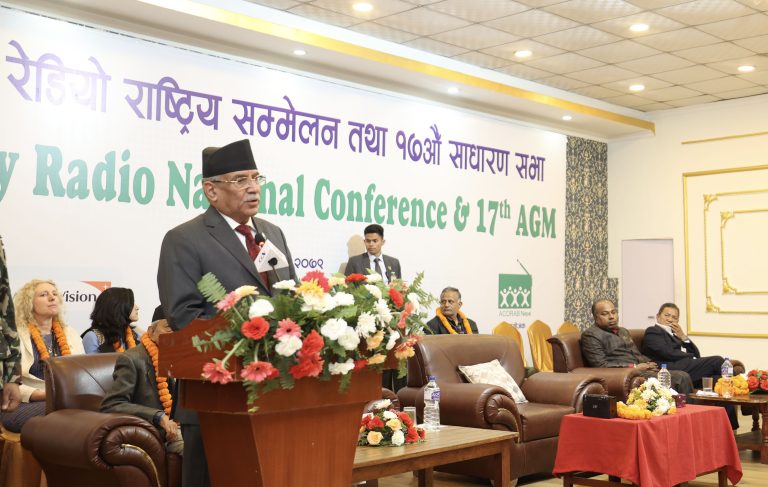 Kathmandu, March 23: Prime Minister Pushpa Kamal Dahal 'Prachanda' has said the community radios have played a crucial role for social transformation in Nepal. Addressing the Community Radio National Conference and the 17th Annual General Meeting organized on the occasion of the Establishment Day of the Association of Community Radio
