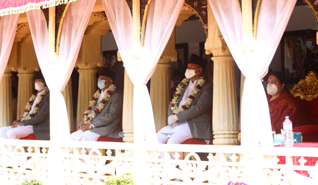 KATHMANDU: President Bidya Devi Bhandari attended the Basanta Shrawan ritual organised at the Nasalchok of Hanumandhoka here today on the occasion of the Basanta Panchami. On the occasion, President Bhandari listened to the hymns and the melody played as per the Vedic rituals. There is a tradition of the Head