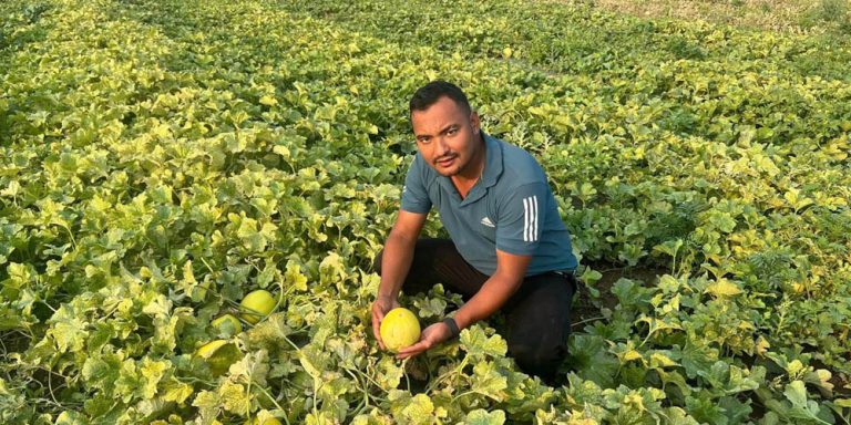 Dang, June 15: Birendra Khadka, 27, of Jabang Dudilabot, Madi Rural Municipality-1, Rolpa, and Birendra Oli, 31, of Parivartan Rural Municipality-5, are making a good income from watermelon farming. The youth involved in watermelon farming on the banks of the Babai River in Ghusra, Ghorahi Sub-metropolitan City-7. They are involved